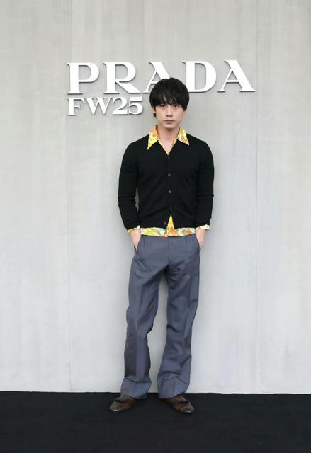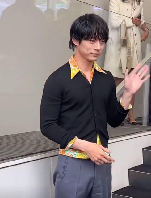 日本坂口健太郎这样的中日韩明星也来了不少,当天穿着一件亮黄色的花衬衫,搭配黑色的毛衣和灰色的裤子。