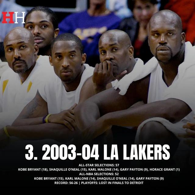 那时候湖人队被看好可以再得到一次。 NBA 除了有冠军之外 OK 除了科比和沙奎尔奥尼尔,他们还有著名的爵士卡尔马龙和加里佩顿!不幸的是,湖人队在那个赛季遭受了伤病和一些矛盾的加剧。常规赛获胜 56 胜 26 负面记录,季后赛虽然进入了总决赛,但却输给了底特律活塞。