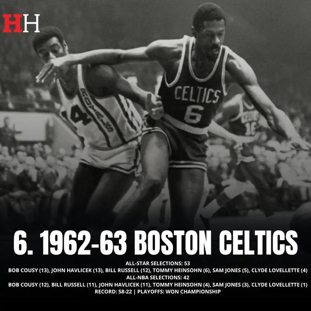入选全明星 53 第二:鲍勃库西 ( 13 ) 、谢克,约翰哈佛利 ( 13 ) 、比尔拉塞尔 ( 12 ) 、汤米海因森 ( 6 ) 、萨姆琼斯 ( 5 ) 、克莱德洛夫莱特 ( 4 )