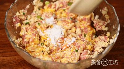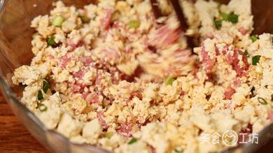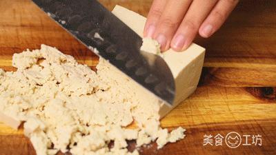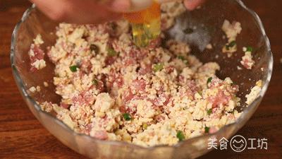 1. 将老豆腐粉碎,加入肉沫中。