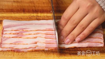 4. 培根半切备用。