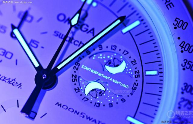 “月相任务”有两种不同的配色方案:白色和黑色。它们都使用相同颜色的表壳表盘和表带,具有很大的视觉冲击力。这款游戏具有月相显示功能,依靠弯月的史努比随着月相慢慢改变位置。在 UV 灯光照射下,横桥会出现" I can't sleep without the night light!(没有夜灯我很难入睡)”这个词,是漫画中的经典台词。