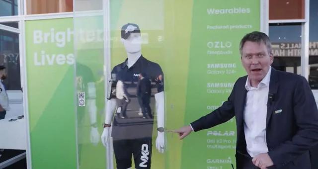 NXP 在展台上,一辆印度皇家恩菲尔德电动摩托车引起了观众的关注。它使用了 NXP 多个芯片,包括电池管理、功率管理、 IC、CAN、线束及车身控制器。展台上还有一位模特,可穿戴手表,Meta 眼镜,集成 NXP 的 iMX RT700 微处理器,这种低功耗控制器也用于手表、心率检测器、胰岛素泵等智能产品。