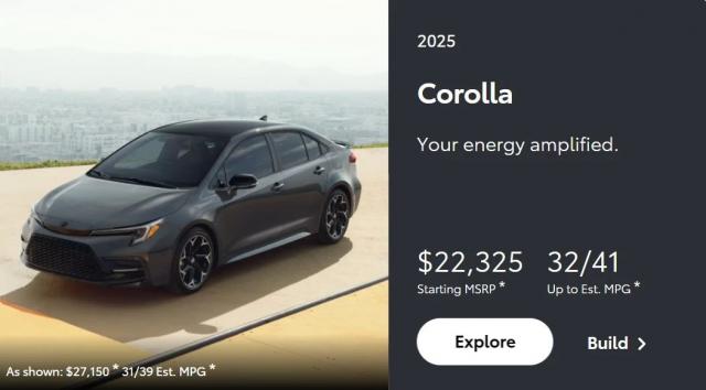 另外一款知名的家用卡罗拉,这款车在美国的售价是 22325 美金,相当于 16.3 万元人民币。要知道卡罗拉目前在中国 4 一万元左右的优惠幅度,裸车最低价格只需要 7 一万多,相当于美国价格的一半。