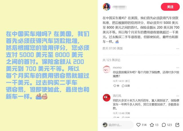 最近,很多美国“ TikTok 难民“涌入小红书,这也引发了一波中美网友查账,了解更真实的中美生活。但是在买车这件事上,美国是比中国贵还是便宜?大咖也是通过小红书找到的。