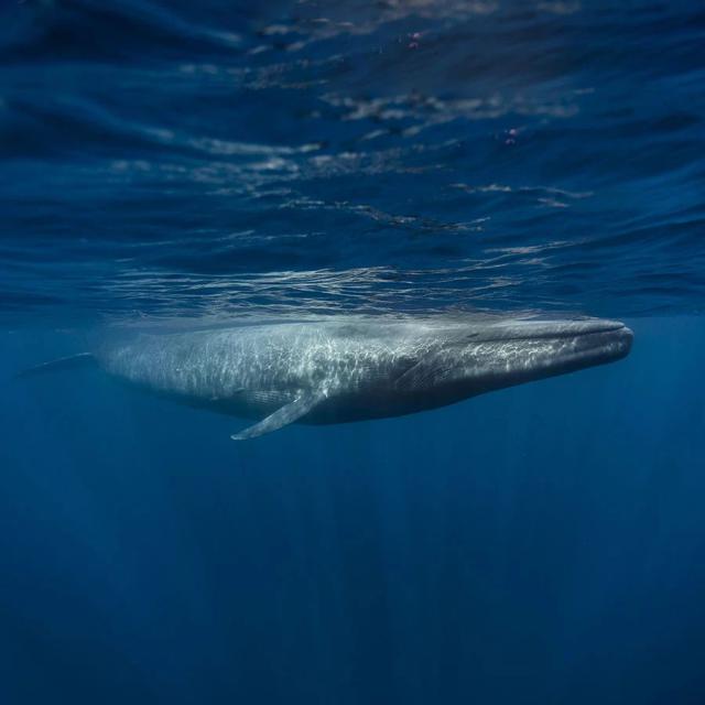 蓝鲸的上颌有两行像筛子一样的长须。只要它“呜呜”一张嘴,大量的虾和海水就会跑进嘴里。然后闭上嘴,把海水从须缝里挤出来,只留下美味的虾。透明磷虾是蓝鲸的最爱。据说一顿饭可以吃一吨磷虾。有些蓝鲸天生就是大胃王,估计一天要消灭四五吨磷虾。