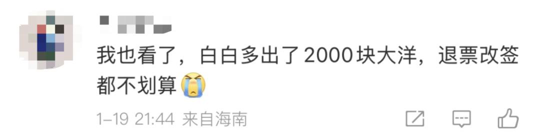 据报道,1月19日,有游客告诉记者,近日,他们再次预订了一家三口春节期间从北京前往珠海的航班。与半个月前预订的同一航班相比,平均每人花费600多元。不仅是这条航道,春节期间北京来回三亚等热门航道也呈下降趋势,部分机票价格降幅超过1000元。