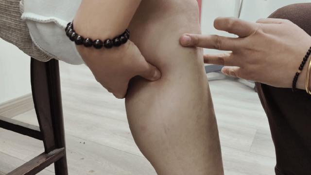 位置:拇指沿小腿内侧骨内缘向上推,抵膝盖骨下,胫骨向内弯曲凹陷。