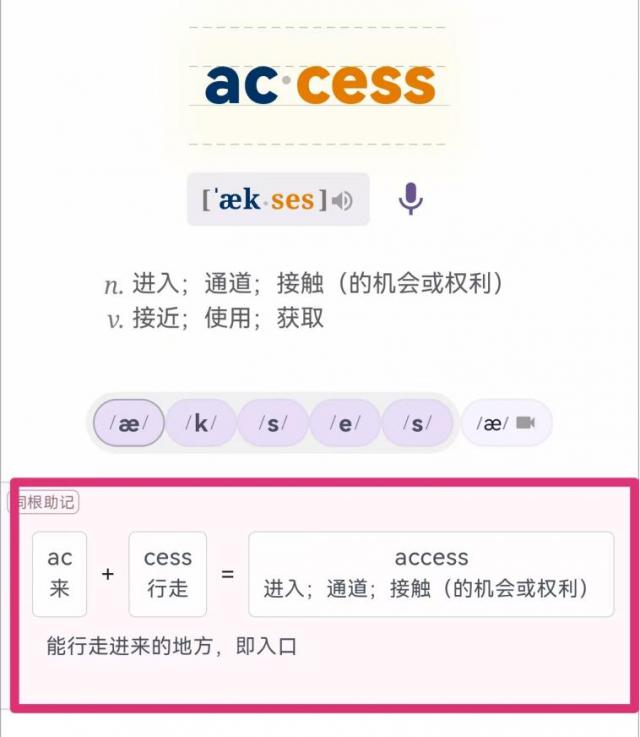 点击可以串联记忆,而且,即使有些单词掌握不好,通过词根词缀联想,也可以有一个大概的意思。——那就是高级的“猜词”能力。 ⏬