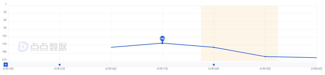 直到商品首次测试前一天(1月15日),投放量开始飙升,并在首次测试后一天(1月17日)达到材料投放量的峰值。随后,材料数量下降。根据投放的具体材料数量,《传奇新百区-盟重神兵》投放了8200个材料。