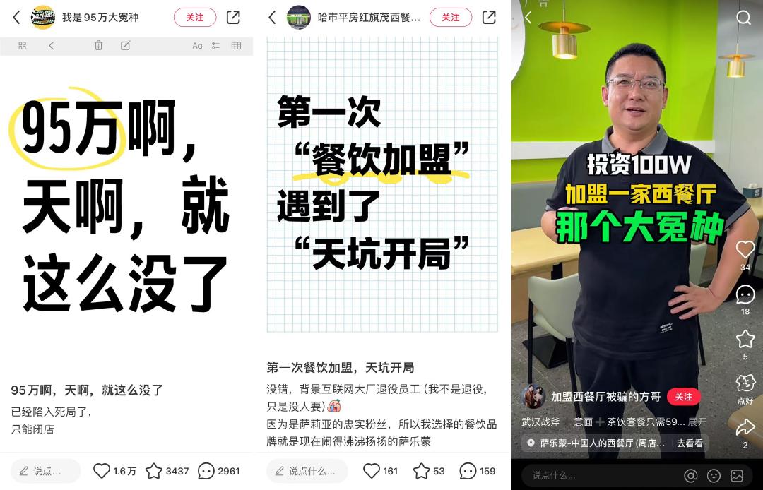 内参君在平台上发现,加入“萨莉亚平替”惨败的故事并不是个案。很多用户分享了自己被快速招聘公司“招数”的经历。这些品牌大多喊着“萨莉亚品牌”的招牌,让加盟商赔钱。