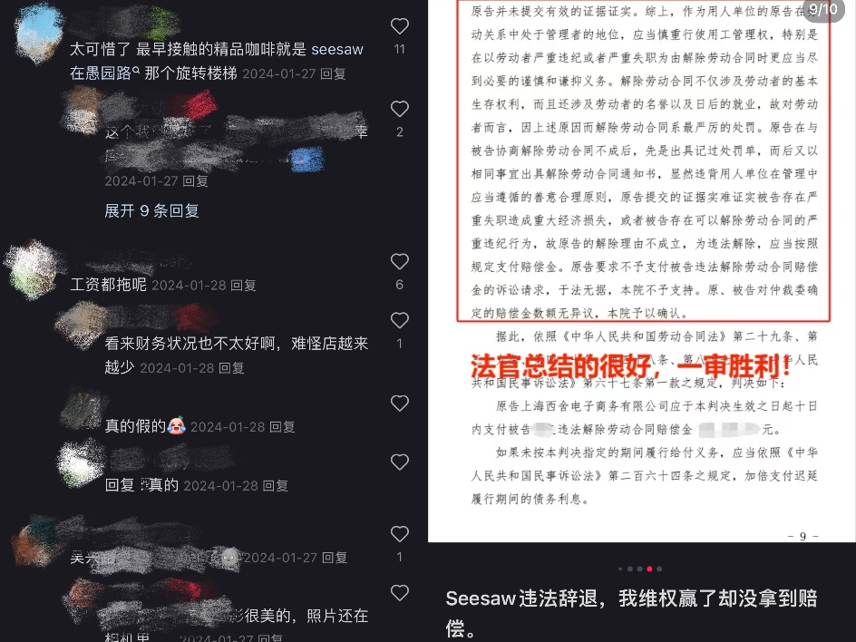 员工选择仲裁维权,最终获得仲裁。然而,Seesaw没有按照裁定支付赔偿金,而是采取了拖延支付的上诉策略。虽然员工再次获胜,但到目前为止,赔偿还没有到位。他不是一个例子。在其他帖子中,一些员工声称Seesaw拖欠工资——这些迹象表明Seesaw的资金有问题。