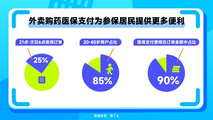 “从数据中我们可以看到,试点实施后,客户支付的费用占中医保个人账户支出的90%以上。在平台医保订单中,晚上21点以后订单的比例达到25%,大大提高了个人医保使用的便利性。来自世界各地的客户都高度认可这种便民试点。”饿了么相关负责人表示,以上海为例,尝试使用医保购买药品的用户,月使用频率比未使用医保时增加了30%左右。而且随后近60%的订单正常使用医疗保险支付服务,极大地方便了参保人员的购药需求。