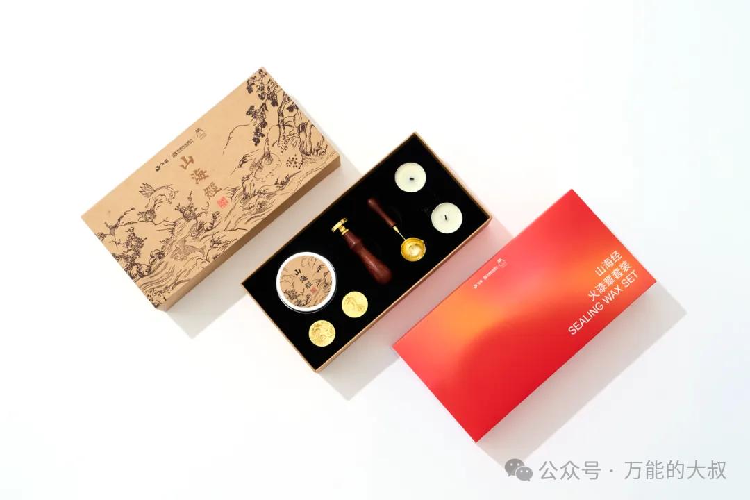 飞书推出的“飞越山河”春节礼盒,很有文化。以《山海经》为主题,礼盒包括山海经火漆章套装和山海经便签套装。