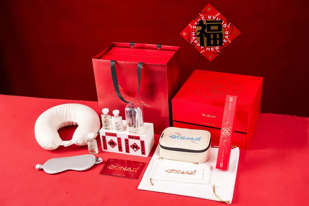 2025年,驼厂推出了春节礼包,主要推广舒适的旅程体验。皮革、丝绸和品牌的冲击让高级感充满了:柔软细腻的皮质颈枕、舒适的丝绸眼罩、一键准备好的小牙缸套装、精致的皮质洗漱包,让你的旅行幸福感UP! 但愿新的一年,Qunar暖心礼盒陪伴大家欣赏人间美景,畅享自由之旅。