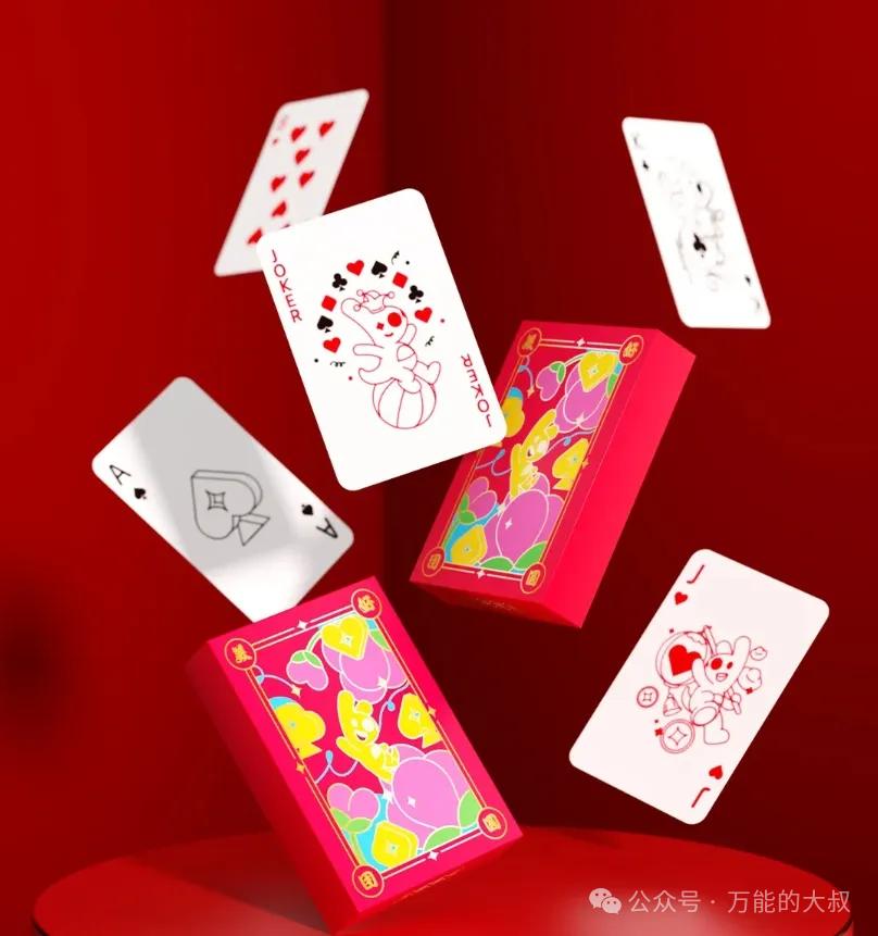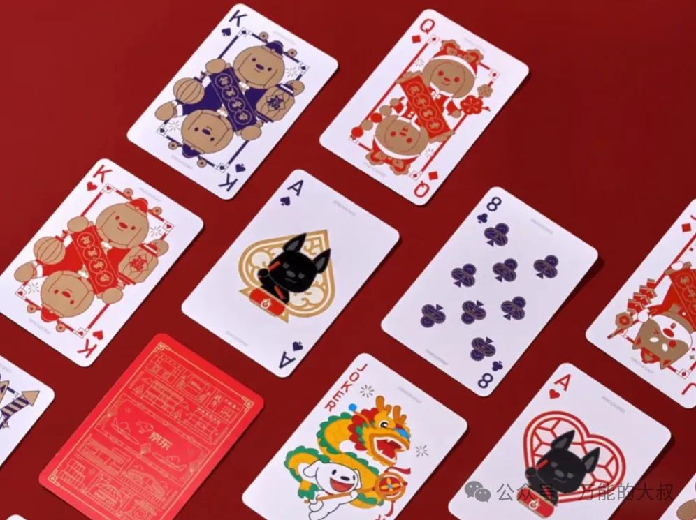 JD.COM新年礼盒的主题是“幸运儿”,12个蛇年DOGA新年娃娃随机发放。红包雕刻传统图案,扑克牌的四种图案设计来自北京、成都、宿迁公园和亚洲一号,JD.COM集团的全球总部。还有八种零食。