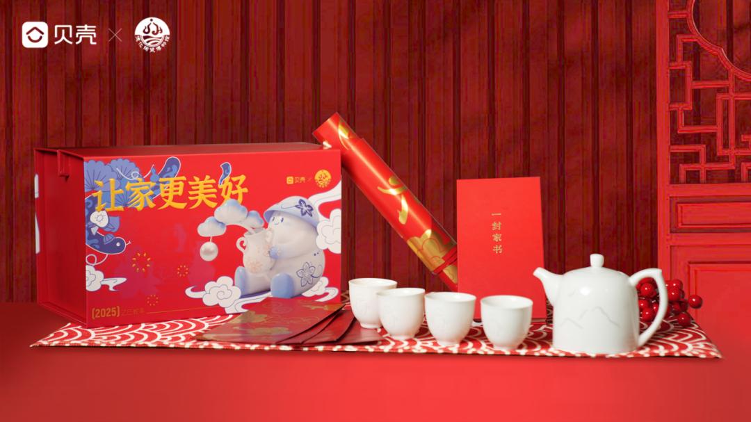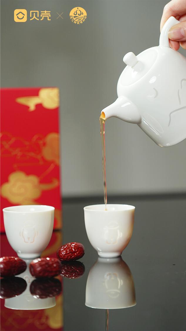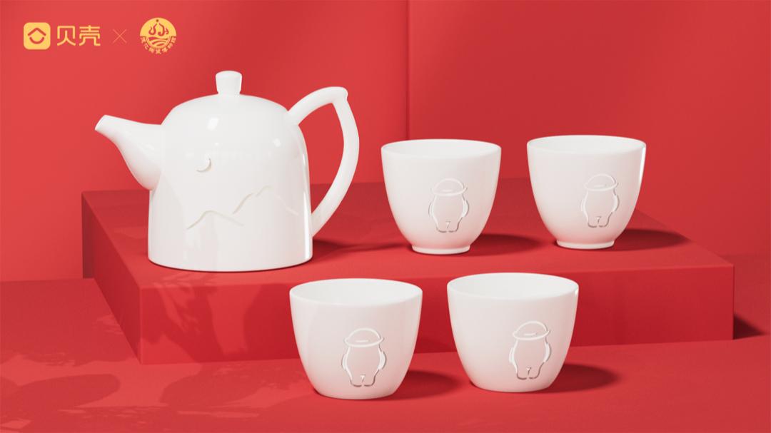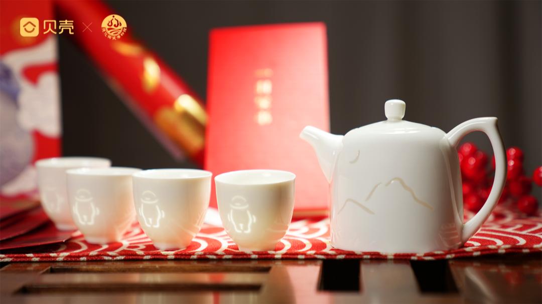 2025年,贝壳新年家庭礼品联合品牌德化陶瓷博物馆,打造定制白瓷茶具。德化白瓷起源于唐代,传承了几千年。它是白色的,独特的,精致的,芳香的,一代又一代的工匠一生专注于它。