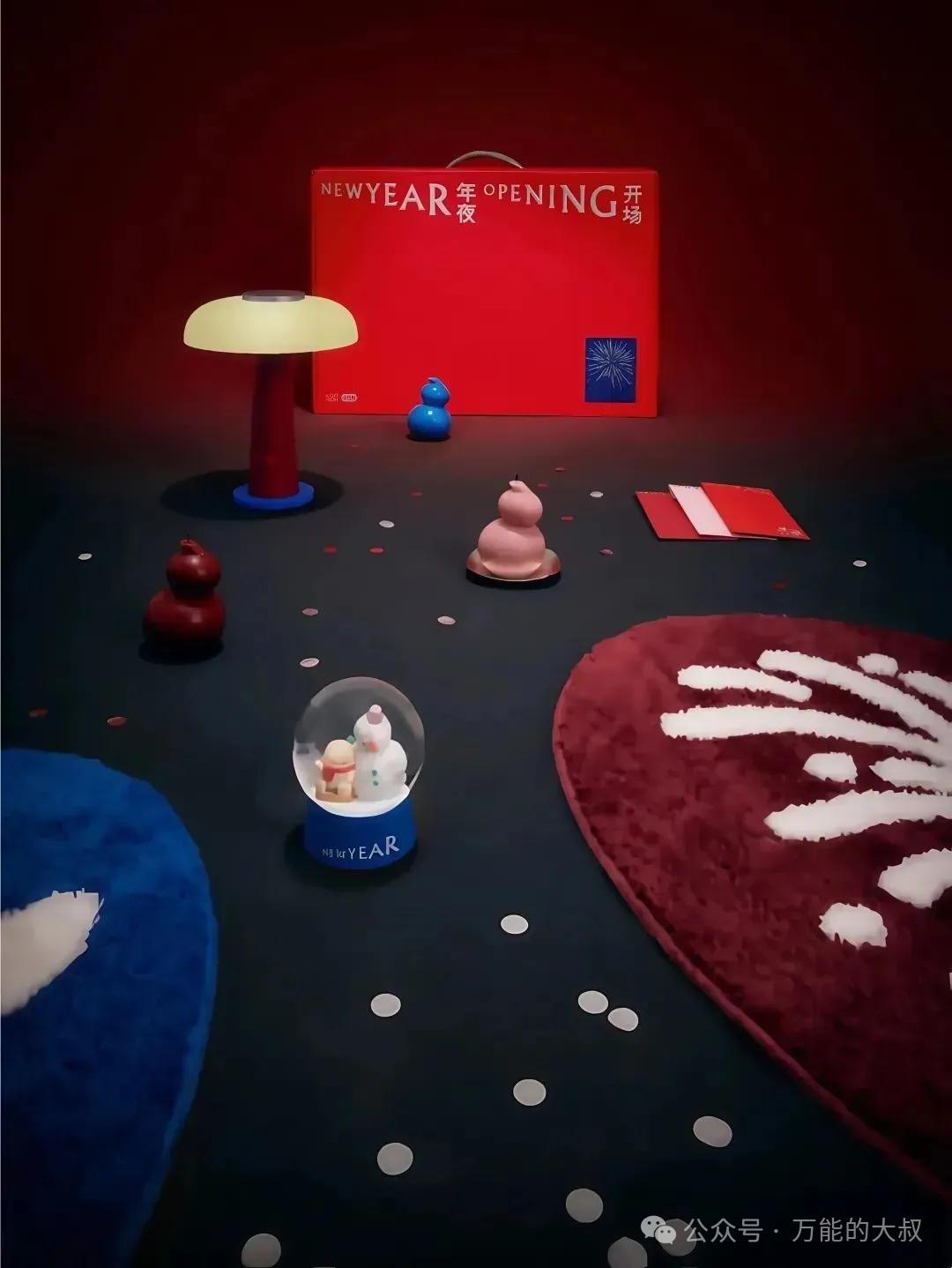 还赞助了春晚的小红书,「大开场」以地毯、水晶球、台灯、香薰蜡烛为主题,似乎团圆饭后家里会有聚会的感觉。当然也有立体压花红包和日历海报。