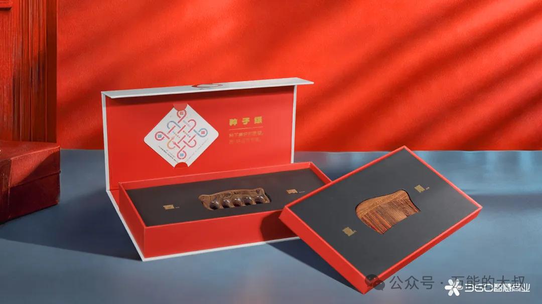 谭木匠经典梳子和鸳鸯木梳子作为礼盒的核心,承载着360智能商业对客户的深深感谢和殷切祝福。礼盒封面将贪婪蛇游戏融入中国结的设计中,蛇形趋势嵌入代表财富的铜线图案、代表好运的四叶草、寓意顺利的六柿图案,寓意蛇年好运,财源广进。