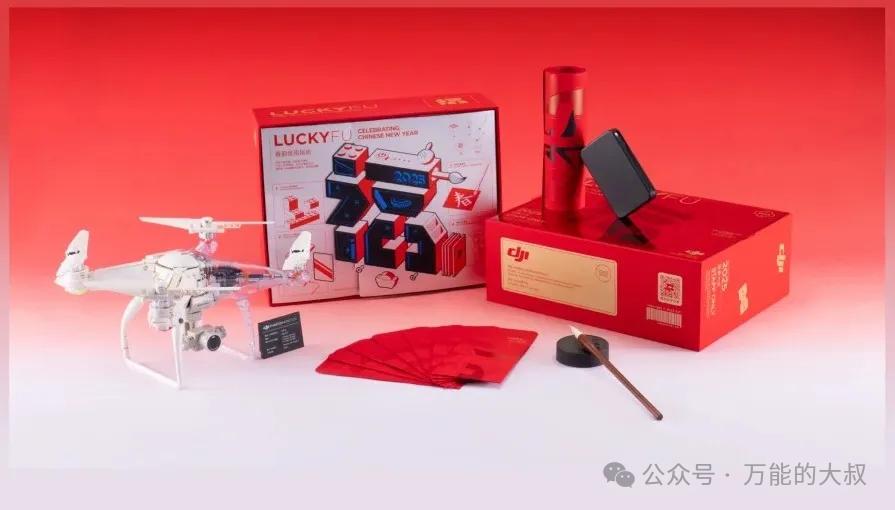 DJI的礼盒每年都很“豪华”,今年直接把无人机做成乐高。笔墨服务,可以直接写春联。还有红包和1万毫安充电宝。