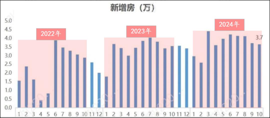 首先是新增房源数据, 2024年的总体高于过去三年。