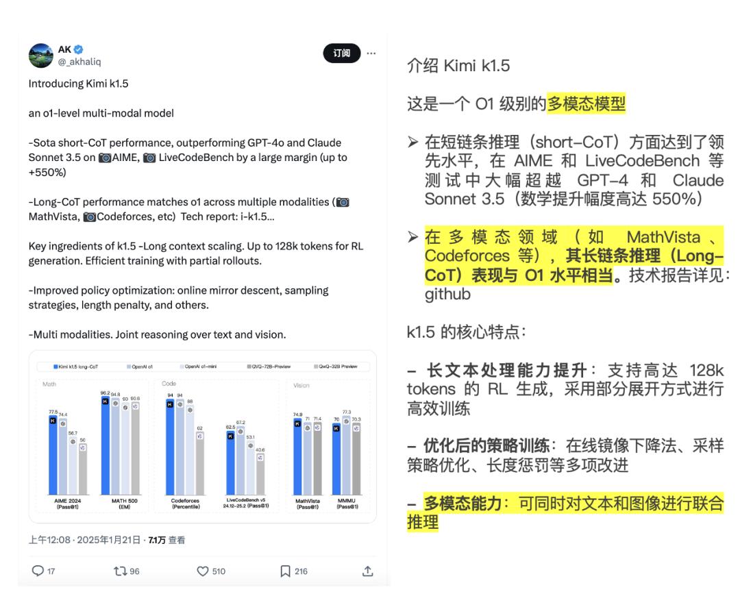 而且,与OpenAI不同。 Kimi和DeepSeeK都发布了详细的技术报告,分享了模型训练技术的探索经验,并立即在国外AI圈掀起了解读论文的热潮。