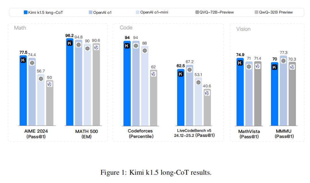 Kimi k1.5/ DeepSeeK R1首次真正对比了正式版o1,获得了SOTA成绩。其中,k1.在支持文字和图像推理的同时,也是国内第一个多模态o1。它在全球推理模型领域都取得了很大的成就。