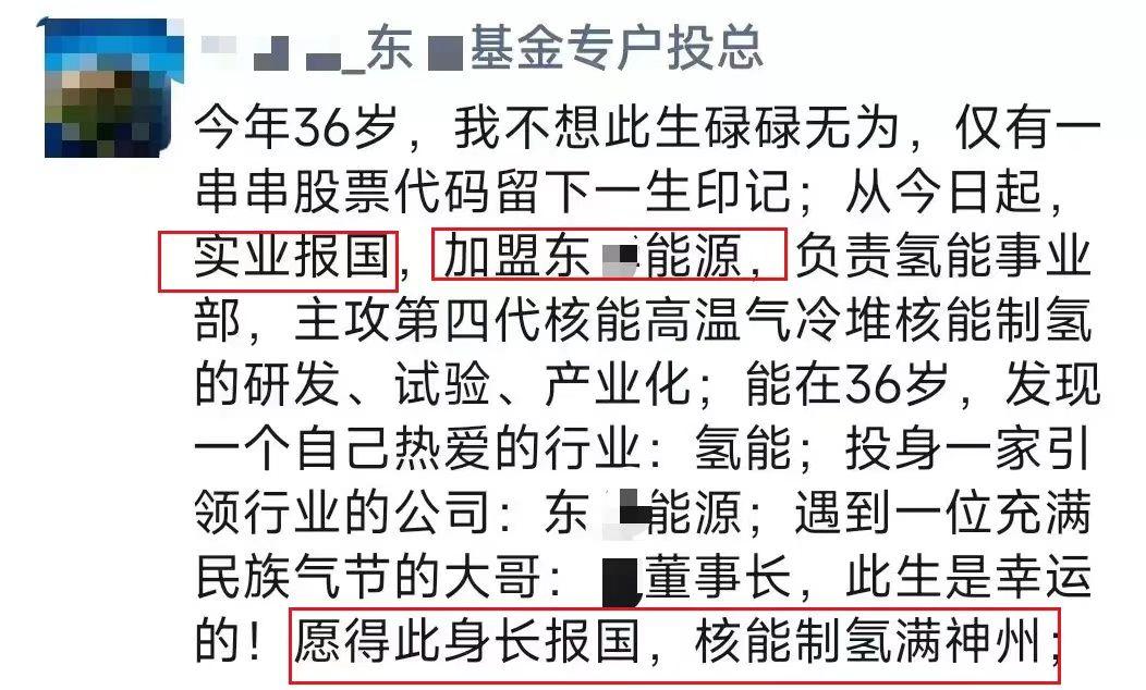 2023年10月,原吴国基金专户投资总监刘浩宇在朋友圈宣布,“我不想这辈子什么都不做”,停止做金融,做行业,做新能源,加入东华能源,负责氢能事业部。这个职位不需要直接和投资圈接触,是一个真正的行业。