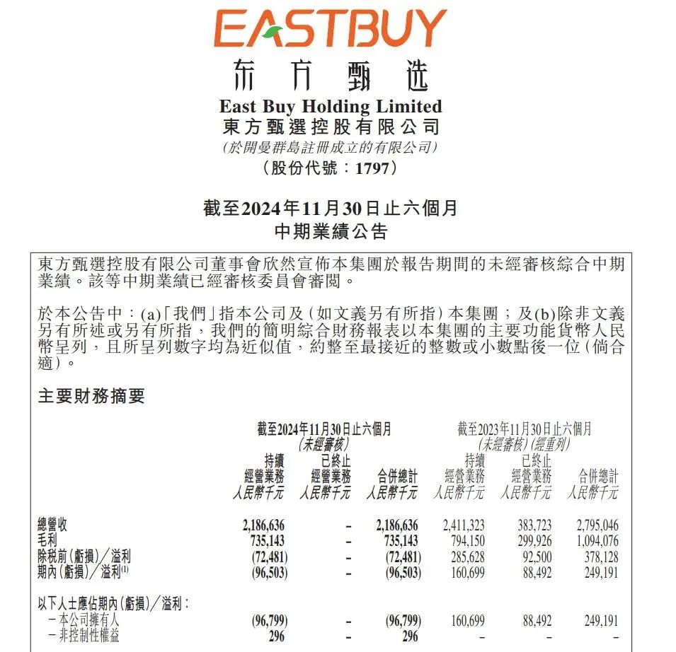 联商快讯:一月二十一日,东方选举公布了2025财年中期业绩(2024年6月1日至2024年11月30日)。