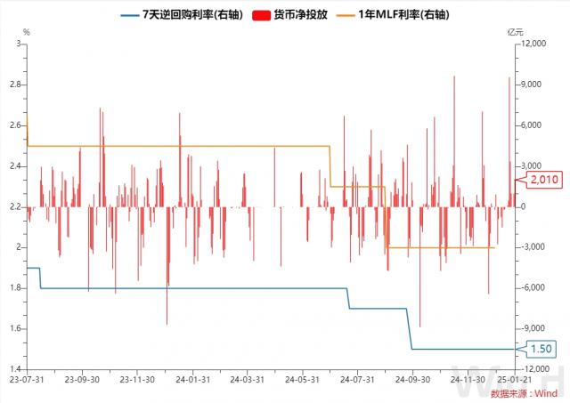 央行 1 月 21 日以固定利率、数量招标方式进行 2560 亿元 14 天期逆回购操作,操作利率 1.65%。Wind 数据显示,当天 550 逆回购到期1亿元,由此计算,单日净投放 2010 连续1亿元 7 日净交付;这个操作是央行近四个月重启的。 14 天期逆回购操作。