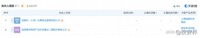 天空调查显示,人工智能产业投资基金有两个重磅投资者:中国集成电路产业投资基金三期有限公司(以下简称“国家大型基金三期”)和中国智能投资(上海)私募基金管理有限公司(以下简称“中国智能投资私募”)。