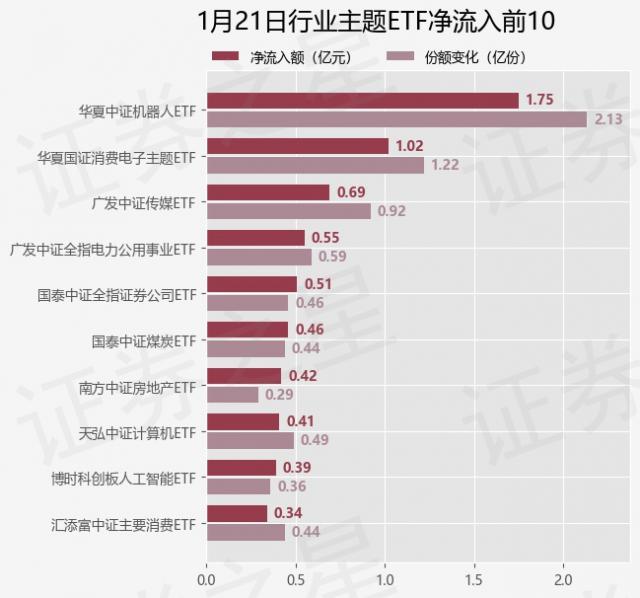 证券之星消息,1 月 21 日行业主题 ETF 总资金净流出基金 13.83 亿元,近 5 一个交易日累计净流出 5.4 亿元,5 在一个交易日内,出现了日合计资金净流出。 3 天(ETF 计算资金流入的方法:(当日 ETF 现场流通份额 - 前一交易日 ETF 现场流通份额)* 当天 ETF 均价,数字仅供参考)。