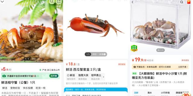 去年夏天,螃蟹作为宠物突然变得流行起来——许多在线购物平台,如丁咚杂货店购物、盒马、美团大象超市等。,相继推出了宠物螃蟹,这不仅起到了“守蟹”的作用,也成为了猫的卖点。但这对螃蟹本身来说可能不是一件好事。