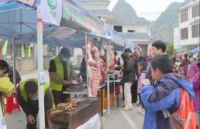 走进小都百屯,各式各样的摊位错落有致地排列着,每一个摊位前都挤满了群众,热闹非凡,洋溢着浓浓的年味。来自马山县十一个乡镇的农业特产令人眼花缭乱,香气扑鼻的粽子,风味独特的猪血肠,清新可口的金银花茶,香甜醇厚的金伦红糖...各种正宗的食物和农业特产聚集在一起,令人眼花缭乱。游客们穿梭于熙熙攘攘的人群中,品尝美食,购买年货,感受新年市场带来的喜悦与兴奋。