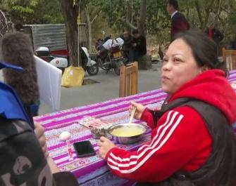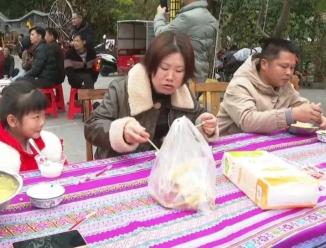 最引人注目的是“养生金粥”,配菜20道,吸引了众多游客争相品尝。到处都是人,充满了浓浓的节日气氛,诉说着新年的喜悦。