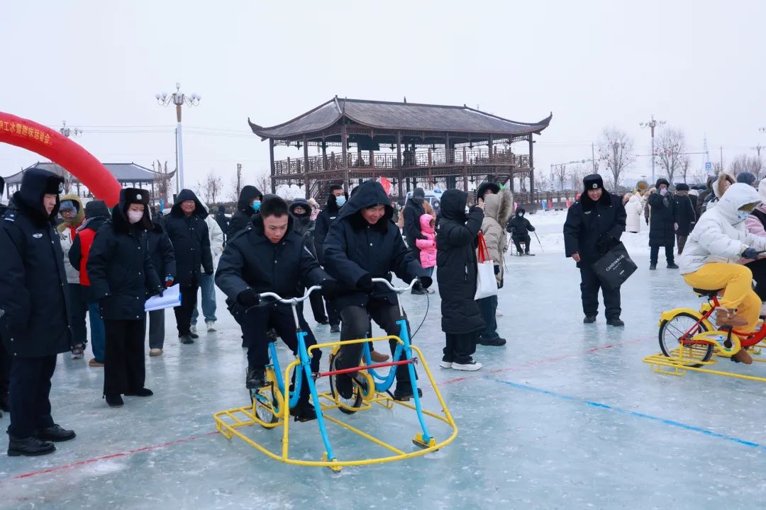 在雪地上的单人跳绳项目中,警察和辅警轻轻跳跃,飞蝇在他们手中快速旋转,他们的动作像流水一样流畅。冰上双人自行车项目考验搭档之间的默契。警察和辅警在冰上小心翼翼地骑自行车。他们一边努力踩踏板,一边保持车身平衡。每个人都互相鼓励,互相支持,表现出良好的团队精神。