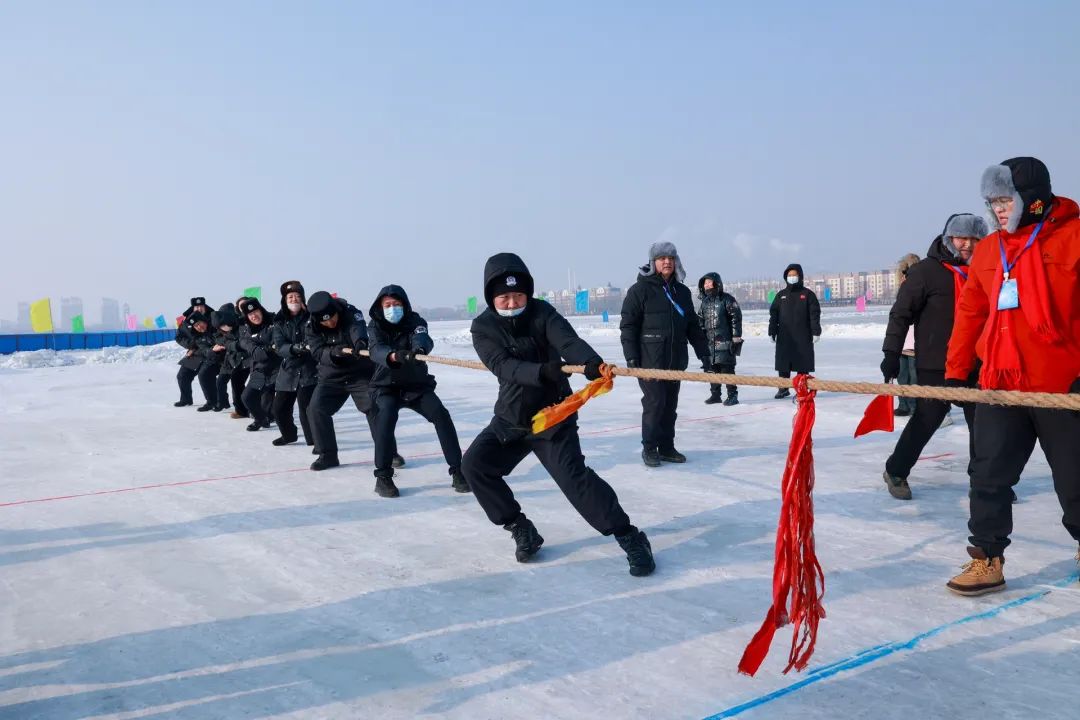 雪拔河比赛堪称力量与团结的较量。公安队都跃跃欲试,双脚稳稳地踩在雪地上,身体后仰,双手紧紧握住绳子。随着“一、二、二”的口号,大家齐心协力往后拉。经过多轮激烈的竞争,公安队凭借顽强的毅力和优秀的团队合作,取得了优异的成绩,赢得了观众的掌声。