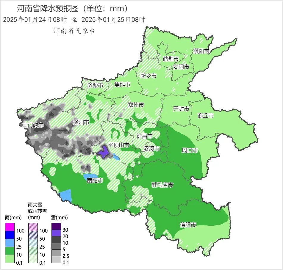 二十五日:阴天有小到中雨或雨夹雪,西部山区中雪,十五日,~5℃