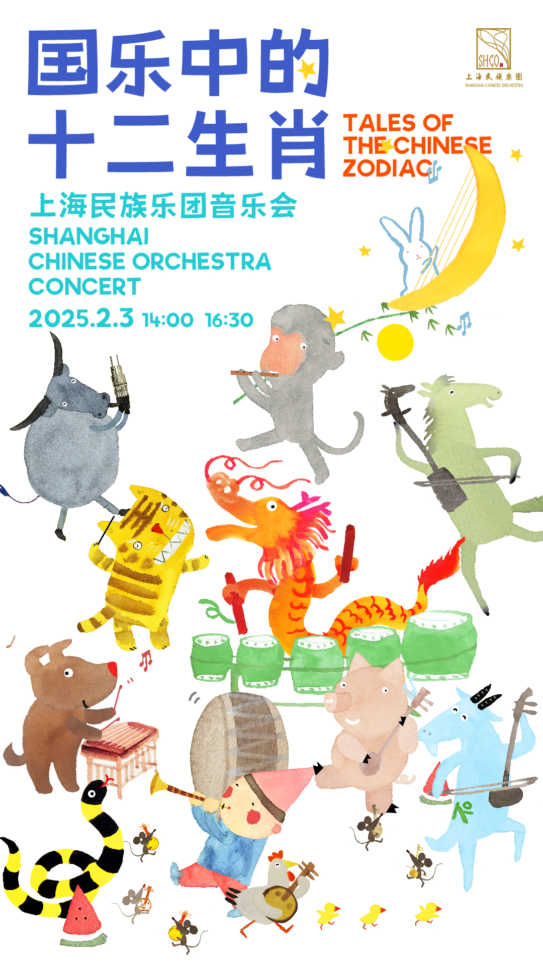 根据十二生肖主题,上海民族乐团创作了12部原创民间音乐作品,每一个属都对应着一种传统民间乐器。音乐会是专门为亲子家庭设计的,将民间文化与艺术教育相结合,以原创民间音乐、精致的动画形象和有趣的生肖故事为孩子打开民间音乐的大门。