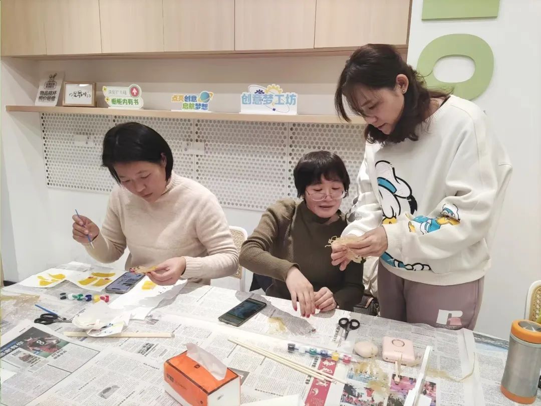 在友谊公寓党群服务中心的“创意梦工作坊”中,社区居民、新兴领域的人和亲子家庭都沉浸在手工制作的快乐中,脸上充满了专注和喜悦。创意与灵感的冲击、甜蜜与温暖同在,参与者不仅收获了精美的作品,还收获了友谊、成长和家庭的温暖。