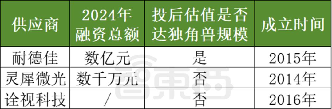 根据因特网信息统计,2024年AI眼镜相关技术供应商的融资状况(智东西制图)