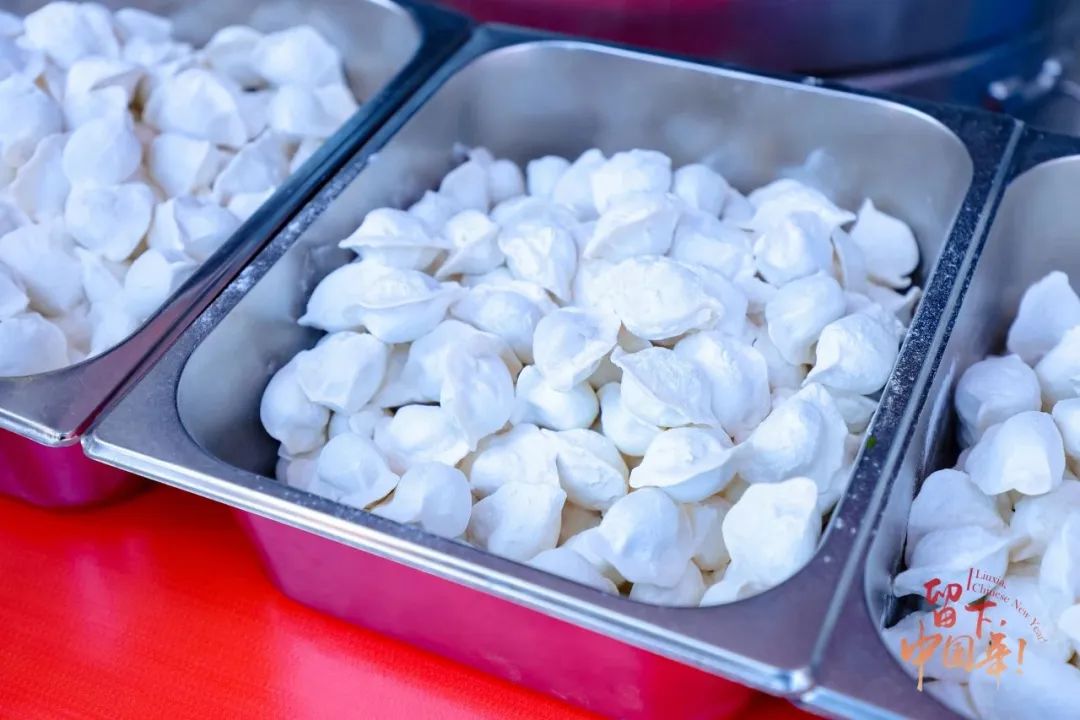 老师和学生一起包饺子,煮饺子