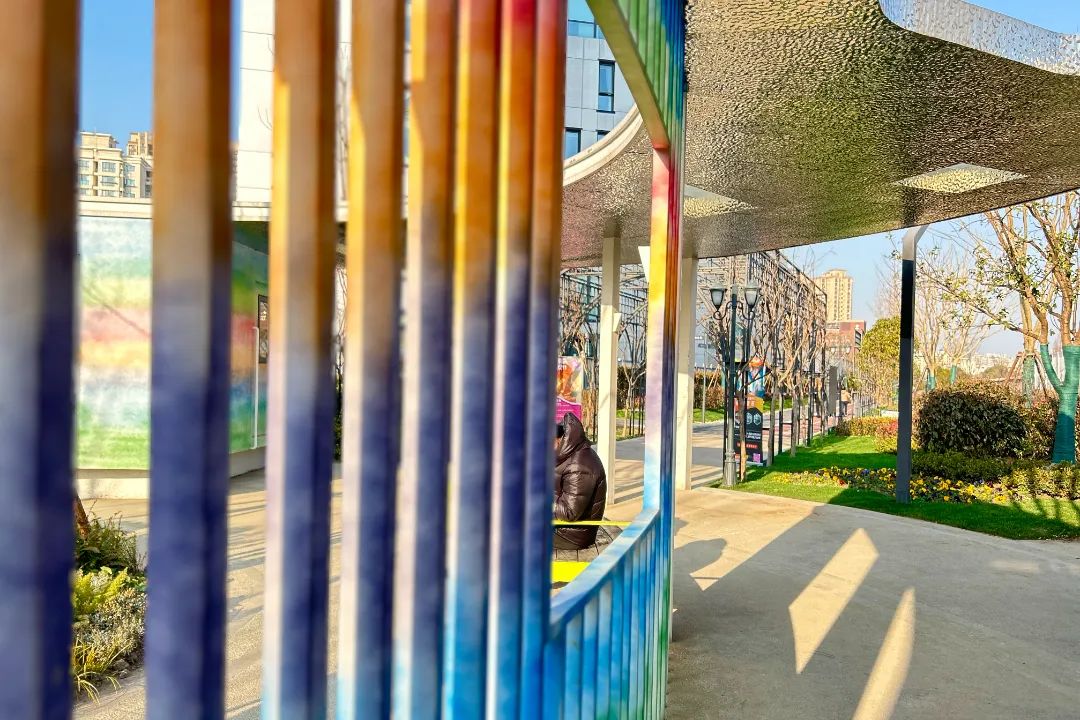 在三门路入口处,红砖外墙的“彩虹站”特别引人注目。车站配备休息室、公厕等服务设施,配备智能公厕系统和完善的适老适幼设施。