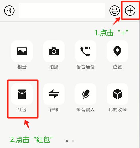 点击“+”→点击“红包”