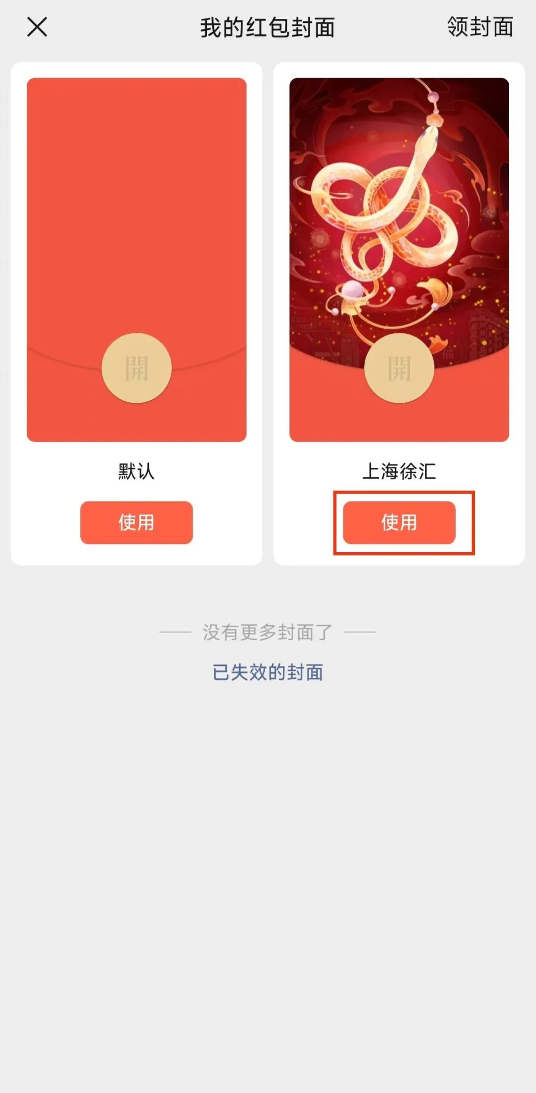 选择已经收到的红包封面