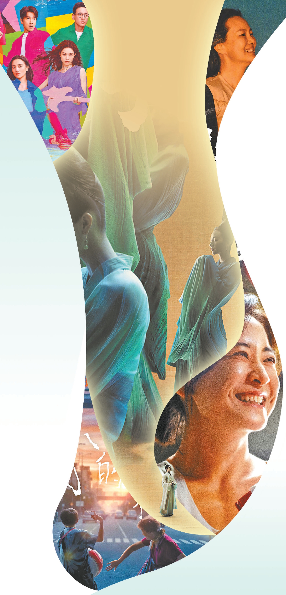 张裕笛导演的《倒仓》将传统京剧与青春成长相结合。“倒仓”不仅是戏曲演员在变声期的必经之路,也是青少年面对未来时的迷茫。故事在传统传承中有所突破,男人可以扮旦角,女人可以唱老生,每个人的生活都是自己掌握的。由周莉亚和韩真执导的《只是绿色》将舞蹈诗剧作为一种小众艺术推向了大众市场。通过镜头、真实场景、特效等电影手法,观众了解了超级天才希孟和他的《千里江山图》,电影也呈现出宋代生动的人文场景。由杨圆圆执导的纪录片《女人世界》中,跳Cha- 美籍华裔老年舞团Cha,每一个人都散发着自信、明亮、积极的生命力。影片用“她92岁,还年轻”来形容舞者余金巧,既有历尽千帆之后的无畏,又有珍惜当下的舒适与洒脱。