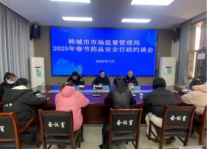 韩城市市场监督管理局召开春节药品安全行政约谈会。