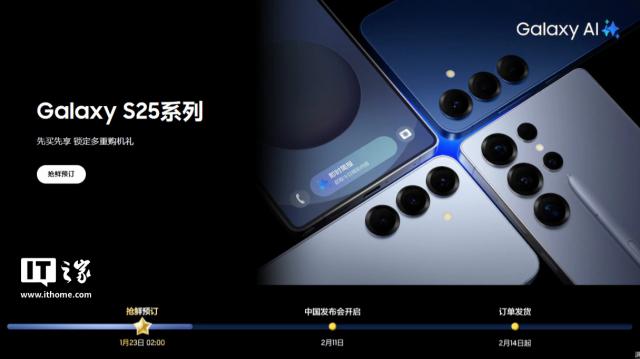 IT 世家 1 月 23 日消息,三星今天正式发布全新消息。 Galaxy S25 包括智能手机系列,包括 Galaxy S25、Galaxy S25 还有旗舰机型 Galaxy S25 Ultra,新机器已经开始预订抢鲜。三星商城页面显示,Galaxy S25 这一系列中国发布会将在 2 月 11 每天举行,订单将在那里 2 月 14 日起发货。