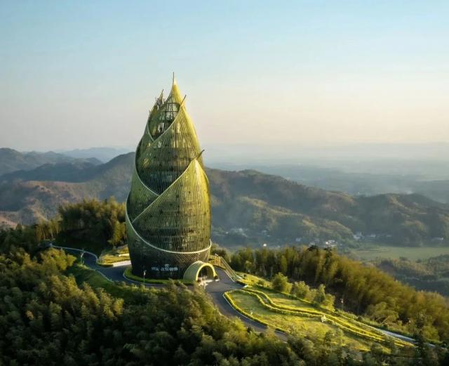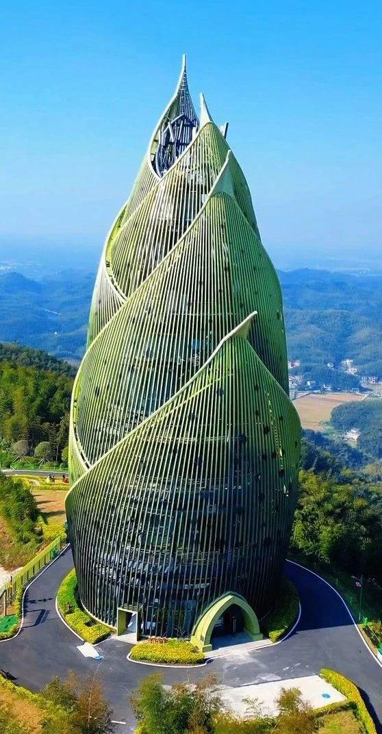 整座竹笋建筑,高 57 米,由 6 竹笋的叶子组成。登上塔顶,可以俯瞰整个桃江县的美景。此外,它还集观景、护林、防火、通讯等重要功能于一体。