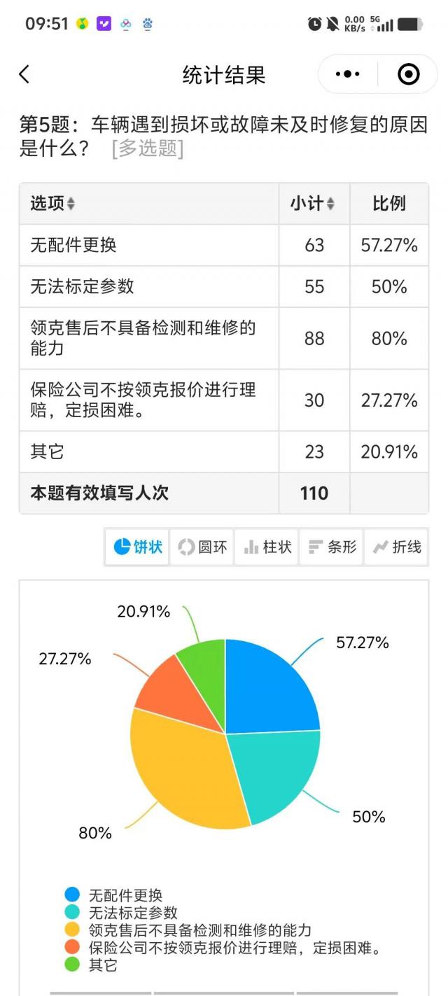 对于车辆损坏或故障未能及时修复的原因,投票数据显示,领克排名前三,原因是没有检测和维护能力,无法更换配件,无法识别参数。